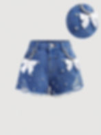 Rori's Place Denim Pearl Bowknot Ripped Shorts